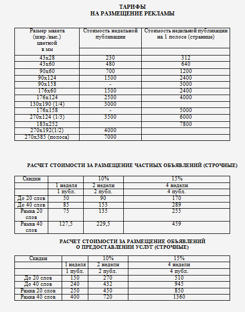 Тарифы